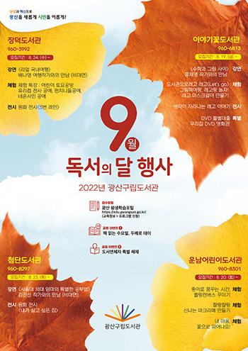 9월 독서의 달 프로그램은 광산구 평생학습포털(edu.gwangsan.go.kr)에서 신청 가능하다.