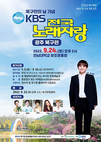 광주 북구는 올해 구민의 날을 기념하고 민주·인권·예향 도시를 전국에 널리 알리고자 국내 최장수 프로그램 \'KBS 전국노래자랑\'이 오는 24일 열린다고 7일 밝혔다.