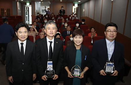 전남도교육청이 15일 광주를 방문한 미 캘리포니아주 5·18민주화운동 기념일 제정 준비위원회 나은숙 부대표 등 일행을 격려하고 공로패(민주시민교육상)를 전달했다.