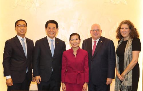 김영록 지사가 지난 16일 JW 메리어트호텔 서울에서 열린 \'미국 메릴랜드주 VIP 비즈니스 리셉션\'에서 래리 호건 주지사를 만나 두 지역 간 교류협력 확대 방안 등에 대해 의견을 나눴다.