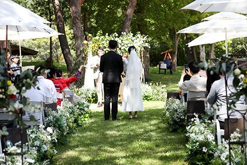 숲 속 결혼식은 결혼식 야외무대, 예복, 결혼 사진, 꽃다발, 답례품, 행사지원 등이 제공됐으며, 코로나19 상황 속에서 방역수칙이 철저히 준수해 안전하고 뜻깊게 이뤄졌다.