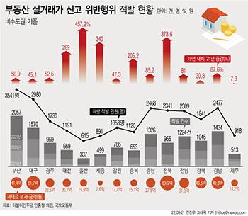 반면 서울을 포함한 수도권 지역에서는 지난해부터 부동산 실거래가 위반 적발 건수가 줄어들고 있다.