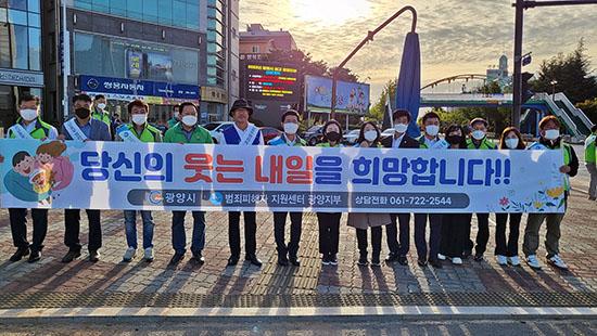 전남동부범죄피해자지원센터 광양지부는 22일 중마동 컨부두사거리에서 범죄피해자 보호·지원에 관한 홍보 합동 캠페인을 실시했다.