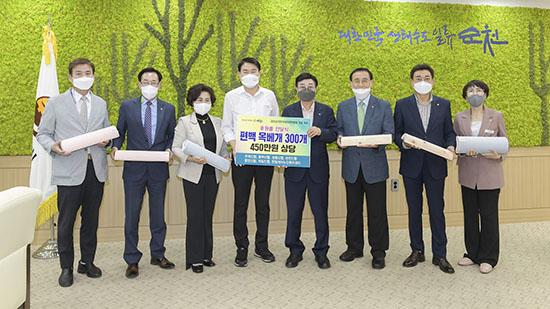 순천시는 지난 21일 시장실에서 7개 기관 대표가 참석한 가운데 경로당 어르신들을 위한 후원물품(편백 목베개) 전달식을 가졌다고 밝혔다.