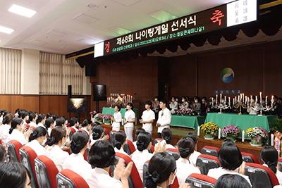 제68회 나이팅게일 선서식은 생명을 존중하는 전문간호인이 되기를 희망하는 2학년 재학생들이 주인공으로, 가족과 지인, 간호학과 재학생, 청암대 교직원 및 지역사회 의료기관의 부서장들과 함께 경건한 분위기에서 진행됐다.