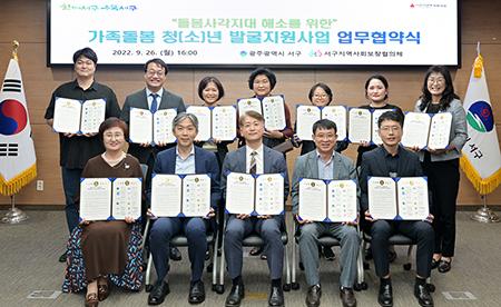 광주 서구가 지난 26일 서구지역사회보장협의체, 시 교육청 등 11개 기관 대표들이 참석한 가운데 ‘가족돌봄청년 발굴지원사업’ 업무협약을 체결했다.