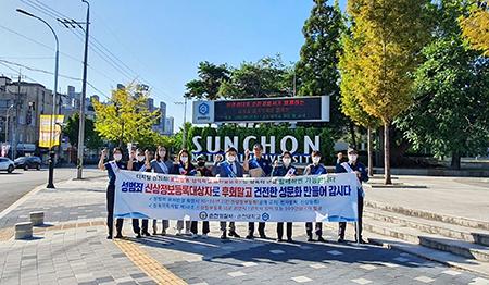 순천경찰서는 대학교 내 선제적 성범죄 예방 및 근절을 위해 순천대 정문 앞에서 합동 캠페인 활동을 전개했다.