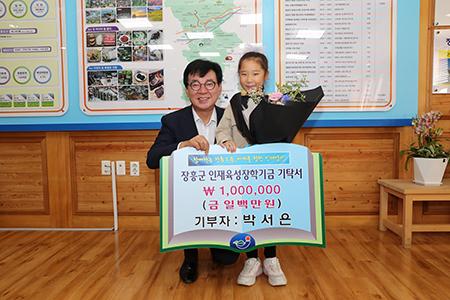 (재)장흥군인재육성장학회는 29일 박서은(목포대연초) 양이 100만원을 기부했다고 밝혔다.