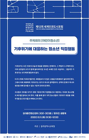 광주시교육청이 오는 11일 오전 9시 30분 김대중컨벤션센터에서 제12회 세계인권도시포럼 ’어린이청소년‘ 주제회의를 개최한다.