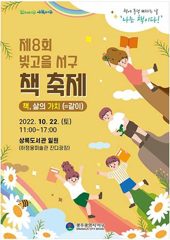 광주 서구(구청장 김이강)가 오는 22일 상록도서관 일원에서 도서관, 사람, 책이 함께 어우러지는 ‘제8회 빛고을 서구 책 축제’를 개최한다.