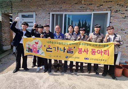 나주공고 봉사활동 동아리 ‘온기 나눔’은 10월 2일 나주지역 이웃을 찾아 보일러 겨울철 동파 방지 정비, 노후된 보일러 교체 및 수리 봉사활동을 진행했다.