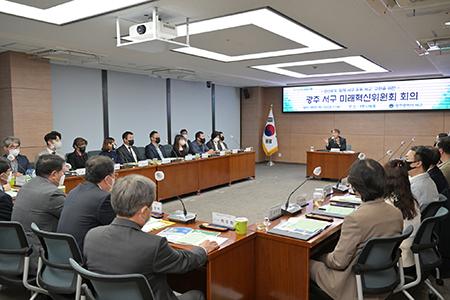 서구는 12일 오후 경제, 자치, 복지, 교육, 여성, 문화, 청년 등 각 분야를 대표하는 민간전문가들과 서구의원, 공무원 등 30명이 위원으로 참여하는 미래혁신위원회 첫 회의를 개최했다. 이날 회의에서는 김이강 서구청장과 김재철 위원이 공동위원장으로 선임됐다.
