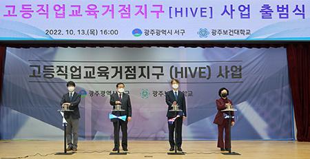 광주 서구(구청장 김이강)가 지난 13일 들불홀에서 광주보건대학교(총장 정명진)와 함께 고등직업교육거점지구(HIVE) 사업 출범식을 갖고 힘찬 첫걸음을 내딛었다.