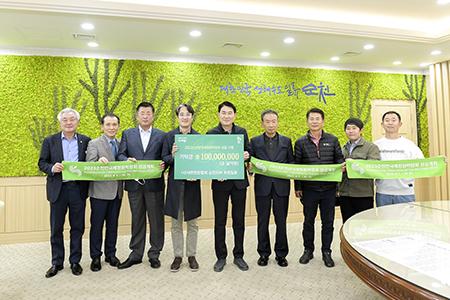 (사)대한한돈협회 순천지부는 2023순천만국제정원박람회가 170여 일 앞으로 다가온 가운데 박람회 성공개최를 염원하는 마음을 담아 지난 13일 순천시청에서 (재)순천만국제정원박람회조직위원회에 1억 원의 기부금을 전달했다.