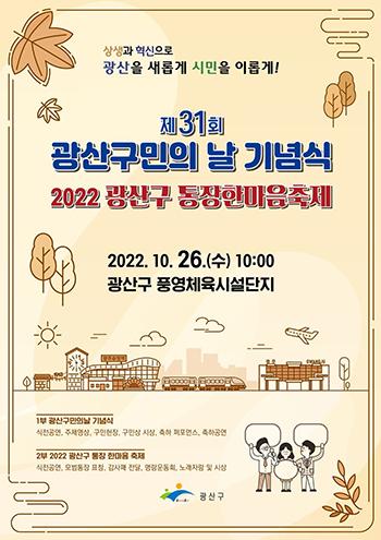 한편, 기념식 후에는 같은 장소에서 마을자치의 첨병으로 열심히 활동하고 있는 광산구 21개 동 통장들의 상생과 화합을 다짐하는 ‘통장 한마음 축제’도 개최된다.