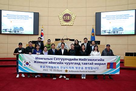 몽골기자총연합회 대표단은 23일 전남도의회에서 전경선 부의장, 차영수 운영위원장과 간담회를 하고 양국 의정활동과 언론 현안을 논의했다.