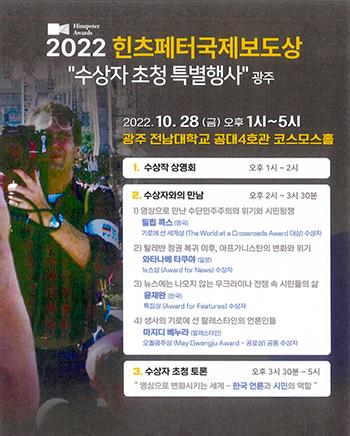 전남대학교는 \'힌츠페터 국제보도상 수상자\'들의 이야기를 들어 볼 수 있는 특별행사가 28일 오후 1시 코스모스홀에서 열린다고 25일 밝혔다.