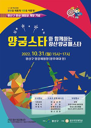 광산구(구청장 박병규)가 체험 관광 거점으로 조성한 양궁체험장 개장을 맞아 31일 광주여대 양궁훈련장에서 세계적인 양궁스타와 함께하는 ‘광산 양궁 축제’를 개최한다.