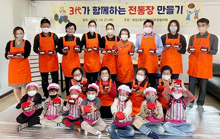 이번 행사는 화정2동 마을주민들이 수립한 마을복지계획의 일환으로 마련됐으며 어르신들과 아이들이 함께 전통장을 만들며 세대간 소통을 증진하고 돌봄이웃과 따뜻한 정을 나눴다.
