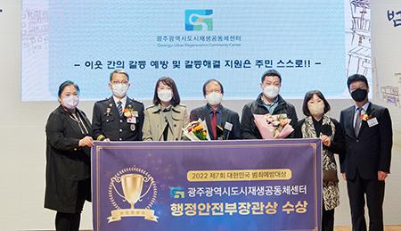광주광역시 도시재생공동체센터는 지난 ‘2022 제 7회 대한민국 예방대상대상’에서 지역의 다양한 주체가 참여하는 공동체 치안 부문에서 최우수로 행안부장관상을 수상했다.