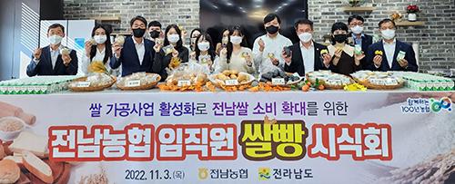 농협 전남지역본부(본부장 박서홍)는 3일 지역본부 4층 라운지에서 쌀 가공 사업 활성화를 통한 전남 쌀 소비확대를 위해 임직원 200여명 및 내방고객 대상으로 우리 쌀 빵 시식 행사를 개최했다고 밝혔다.