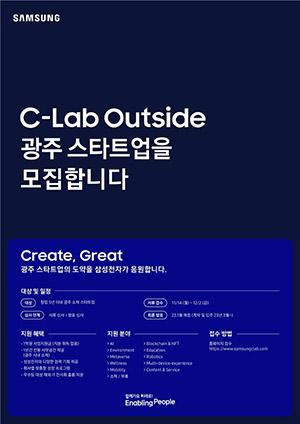 삼성전자는 \'C-Lab 아웃사이드 광주\'에 참여를 희망하는 창업자를 대상으로 오는 16일 시청 2층 무등홀에서 오전 11~12시, 오후 4~5시 등 두 차례에 걸쳐 사업 설명과 질의응답 시간을 갖는다.