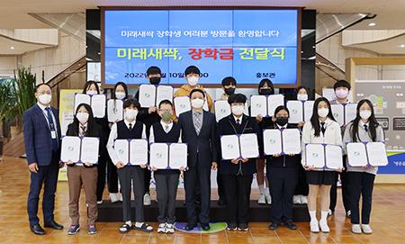 한빛본부는 지역 학생들의 건강한 성장과 평등한 교육기회 제공을 위해 2022년도 \'미래새싹 장학금\' 1260만원을 중·고생 26명에게 전달했다고 14일 밝혔다.