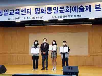 아울러, 우00 학생 외 3명이 제작한 영상작품 ‘갈라진 한민족’과 김00 외 3명의 학생이 출품한 ‘우익과 좌익의 평화통일’이 단체상(교육감상)을, 손00 외 3명의 학생이 출품한 ‘하나’와 박00 학생 외 3명이 출품한 ‘잃어버린 시간을 찾아서’, 양00 학생 외 3명이 출품한 ‘전진지망’이 각각 창의상(교육감상)을 수상하는 기염을 토했다. 기00 학생 등 4개 팀은 통일교육센터장상을 수상했다.