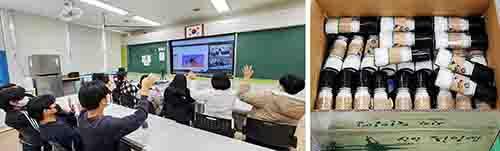 신안신의중은 올해 7월부터 한 달에 한 번 주제를 정해 발표하는 온라인 프로젝트 수업을 하는 말레이시아 Sekolah Sultan Alam Shah 중등학교 한국어반 학생 80여 명에게 그라인더 천일염(유리병)을 국제택배로 보냈다.