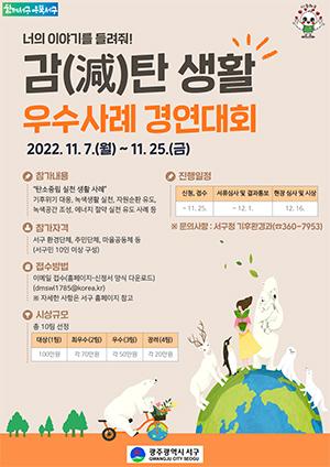 광주 서구(구청장 김이강)가 오는 25일까지 ‘감(減)탄 생활 우수사례’ 공모를 실시한다.