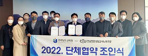 전남전문상담교사노조는 김대중 전남교육감과 조인식을 갖고 지난 2020년 9월 15일부터 진행된 단체협약을 체결했다고 21일 밝혔다.