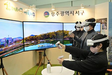 구청 1층에 마련된 체험부스에서는 풍암호수, 금당산, 만귀정 등 서구 8경을 VR기기를 통해 직접 체험하거나 3개의 TV를 통해서 연출한 입체 화면을 볼 수 있다.