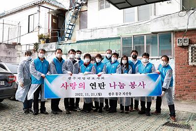 광주지방변호사회는 매년 어려운 이웃들이 따뜻하게 겨울을 날 수 있도록 연탄 후원 봉사를 해오고 있다.