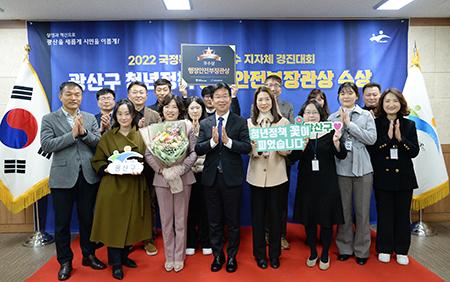 광주 광산구는 청년과 함께 만들고 추진한 \'청년 정책\' 성과를 인정받아 \'국정목표 실천 우수 지자체 경진대회\'에서 행정안전부장관상을 받았다고 1일 밝혔다.