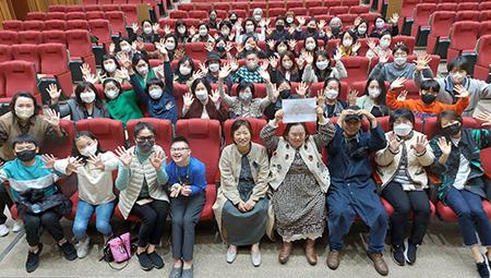 협치학교 제1차시(11월 2일)는 정은혜, 장차현실 작가를 초청해 ‘서로를 이해하고 교감하는 것의 소중함’이라는 주제로 더불어 살아가는 행복한 세상에 관한 이야기를 전했다. 특히 정은혜 작가는 영화 ‘니 얼굴’의 주인공이자, tvN 드라마 ‘우리들의 블루스’에도 출연한 바 있다. 정 작가는 사진 촬영 및 직접 준비한 엽서에 의미 있는 글귀를 남겨 선물해 감동과 위로의 메시지를 더했다.