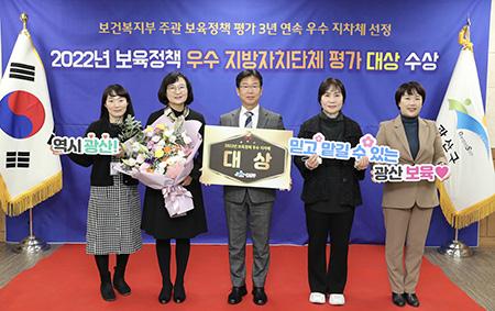 광주 광산구(구청장 박병규)가 보건복지부 주관 ‘2022년 보육 정책 우수 지방자치단체 평가’에서 대상을 수상하며, 3년 연속 우수 지자체로 선정됐다.