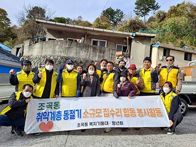 순천시 조곡동 복지기동대는 지난 5일 지역 청년회와 함께 동절기 취약계층 주거개선을 위해 합동 집수리 봉사활동을 펼쳤다.