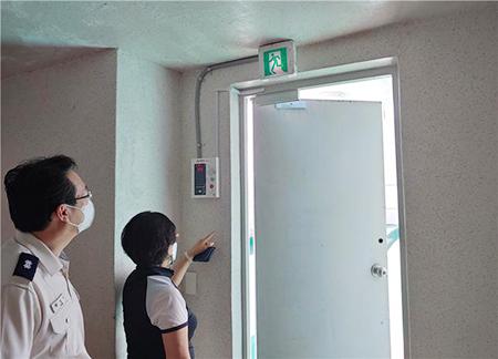 비상문자동개폐장치는 건물의 자동화재탐지설비와 연동돼 화재가 감지되면 출입문 잠김 상태가 자동으로 해제되는 시스템으로, 아파트 화재 시 옥상공간으로 피난할 수 있도록 자동으로 출입문이 열리게 된다.