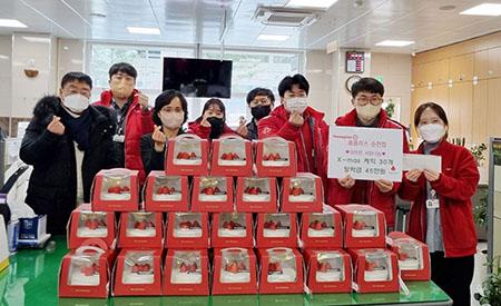 홈플러스 순천점은 지난 23일 크리스마스를 맞아 순천시 왕조1동 행정복지센터를 방문해 직원들의 따뜻한 마음이 담긴 케이크 30개와 장학금 45만원을 전달했다.