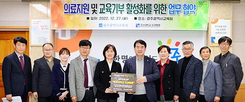 광주시교육청이 27일 조선대학교 치과병원과 ‘의료지원 및 교육기부 활성화’를 위한 업무협약을 체결했다.
