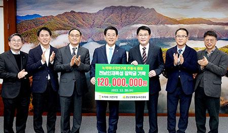 전남도는 녹색에너지연구원이 글로벌 에너지 인재 육성을 위해 전남인재평생교육진흥원에 장학금 1억2000만원을 기탁했다고 28일 밝혔다.