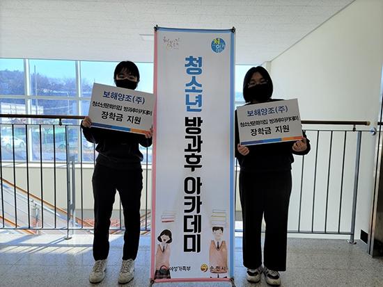 보해양조가 지난 3일 순천시청소년문화의집 방과후아카데미 청소년에게 장학금을 지원했다고 밝혔다.