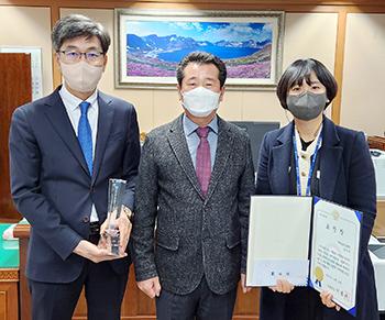 이날 전남도교육청 재정과 김인숙 주무관은 공정하고 투명한 계약업무 수행과 지역 중소기업 제품 구매 활성화에 기여한 공로로 표창장을 받았다.