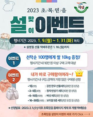 2023년 설 명절을 맞아 강진군 온라인몰 ‘초록믿음’에서 설맞이 특별 이벤트를 실시한다.