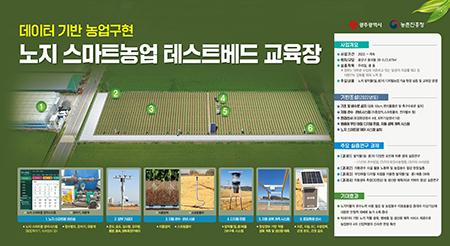노지 테스트베드에서는 자동 관수장비로 노동력과 농업용수를 절감하고, 외부기상대와 작물 생육 계측시스템, 토양환경 센서와 인공지능(AI) 기술을 활용한 생육상황 모니터링과 생산량 예측이 가능하다. 또 무인예찰 디지털트랩을 통한 병해충 데이터베이스 구축과 모니터링으로 병해충 적기 방제에도 효과가 크다.