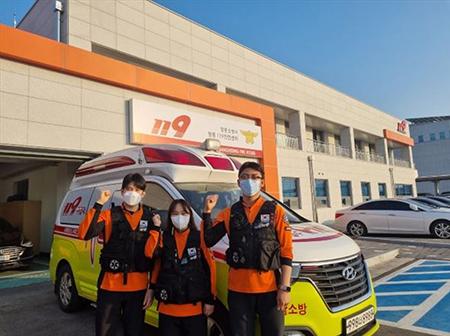 장흥소방서 이창주 소방장과 전송희 김륭희 소방교. /장흥소방서 제공