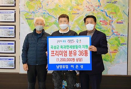 곡성군은 남양유업 본사에서 근무하고 있는 지역출신 이은성씨가 검은토끼띠(계묘년)의 해 첫날 태어난 세쌍둥이 가정에 분유를 기탁했다고 11일 밝혔다.