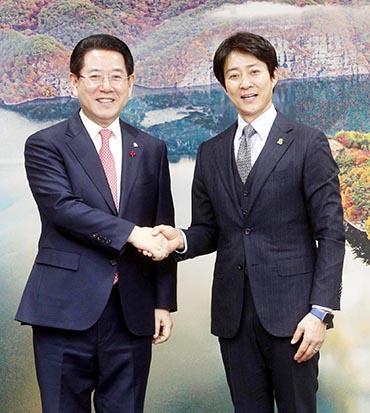 김영록 전남도지사는 18일 도청 접견실에서 최수종 전남도영상위원회 운영위원장을 만나 전남 영상산업 발전 방안을 논의했다.