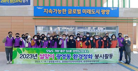 광양시 광영동은 지난 18일 청결한 도시환경 조성과 주민들이 즐거운 설 명절을 보낼 수 있도록 광영동 주민센터 직원을 비롯해 광영동 통장협의회, 주민자치위원회 등 60여 명이 힘을 모아 광영동 일대에서 대청결 봉사활동을 실시했다고 밝혔다.