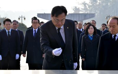정진석 위원장을 필두로 국민의힘 비대위원들은 이날 오전 광주 북구 운정동 국립 5·18민주묘지를 찾아 참배했다.